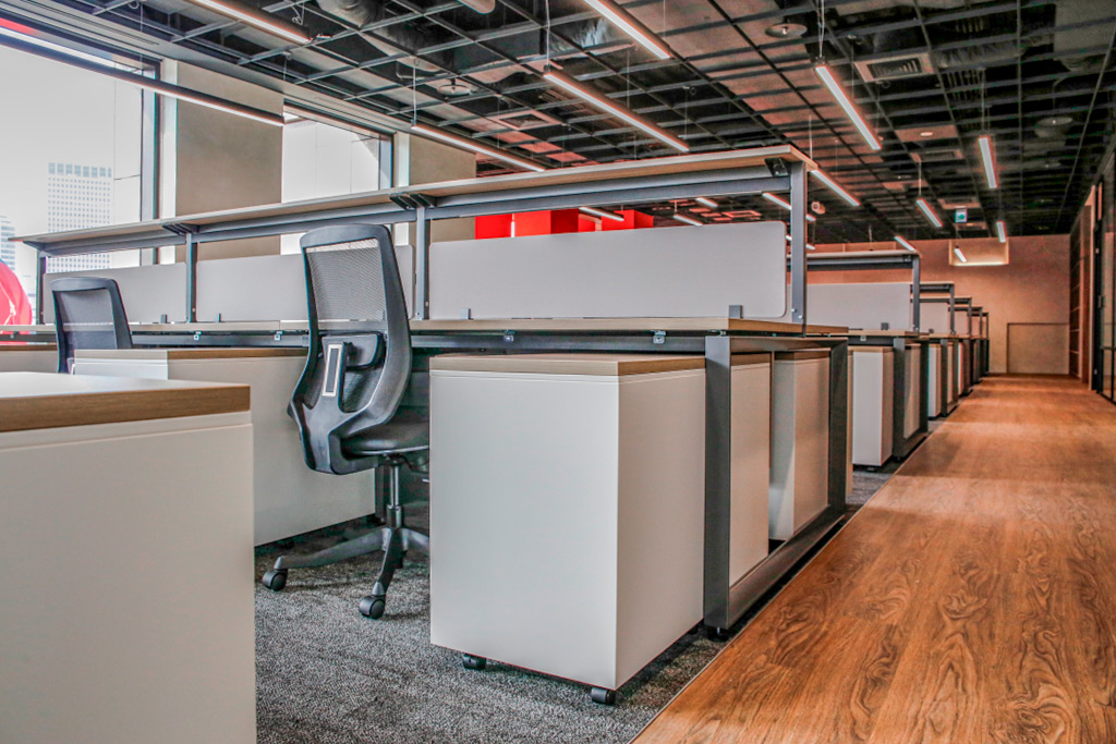 • 促進交流的低屏風系統 – 低高度屏風設計,最大化視野的開放性。讓團隊成員在座位上即可輕鬆溝通,滿足工程專案所需的緊密協作需求。