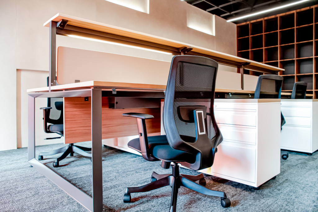 • 機能導向的收納整合 – 結合側櫃與桌面的複合式工作站設計,提供充裕的個人收納空間。讓繁雜的圖紙與文件各有歸屬,維持桌面的整潔與工作的專注度。